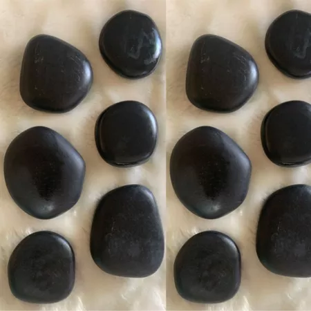 – 12 Pedras Quentes Vulcânicas em tamanhos variados de 5 a 7 centímetros.