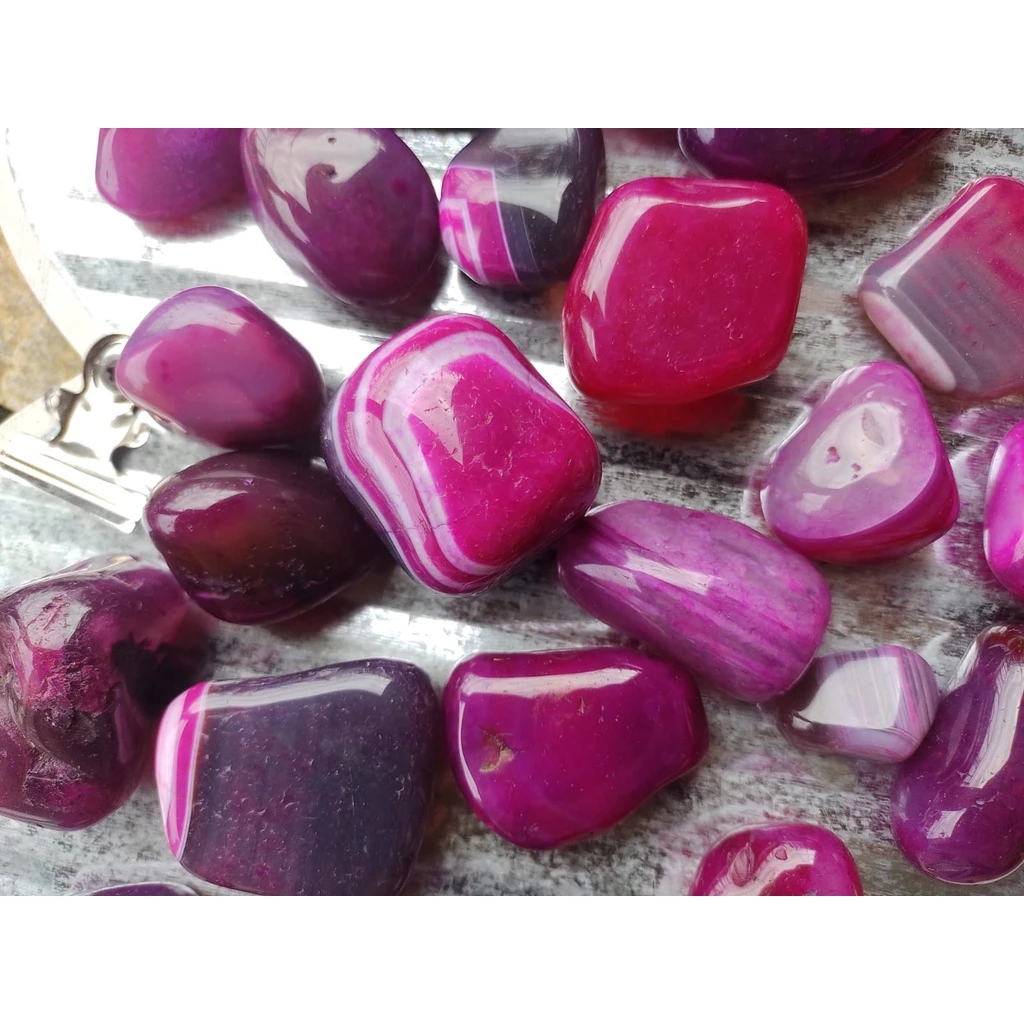 A Ágata Rosa está relacionada à sorte e ao equilíbrio físico. Ela tem a capacidade de harmonizar o corpo e a mente. Tem o poder de atrair riqueza e amor. Transmite calma e tolerância especialmente nos relacionamentos.